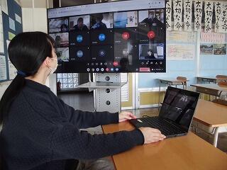 自宅で授業に参加している生徒にも見せて説明。