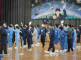 3校時には、柔道の受け身を学習しました。安全面に気を付けながら行いましたが、中学生は小学生に手本になるようにしっかりと取り組んでいました。小学生も、頑張る姿が見られました。これからも、小中学校の個別支援学級で交流を行っていきたいと思います。