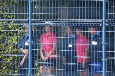 〔ネット越しに応援する生徒の様子〕