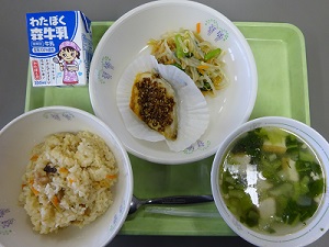 コンテストで優秀賞に輝いたメニューが今日の本校の給食で提供されました。