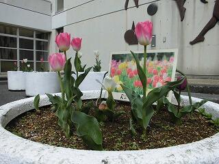 中庭や花壇はチューリップが満開!