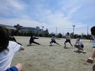 昼休みのソーラン練習は校庭。