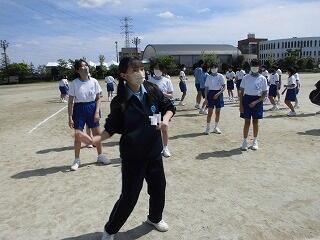 会場では3年生が集団へ指示。