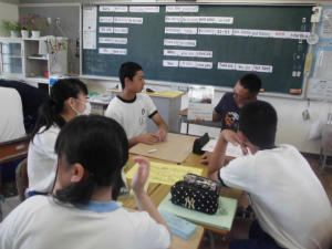 昨日は、2年生の英語でペア学習、今日は3年生の英語で班学習。楽しく英会話をしています。