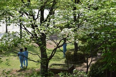 大増中の生徒と言えば、こんな日の昼休みには、校庭でサッカーやバドミントンをして体を動かしています。また、木陰を友だちと歩きながら談笑したりする生徒の姿もあります。