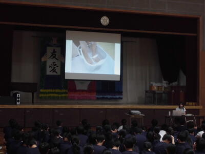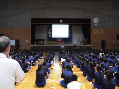 本校学校薬剤師様をお招きして、熱中症に関する授業を行いました。