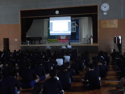 今日は「非行防止教室」を、春日部警察署の方を講師にお招きして実施ししました。
