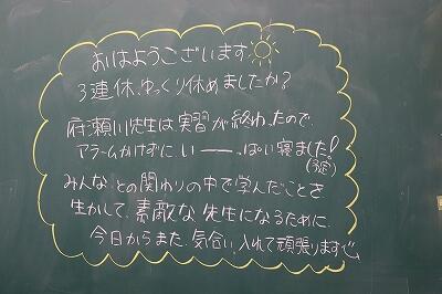 今日は教育実習最終日の研究授業でした。とても良い授業でした。2週間お疲れさまでした。