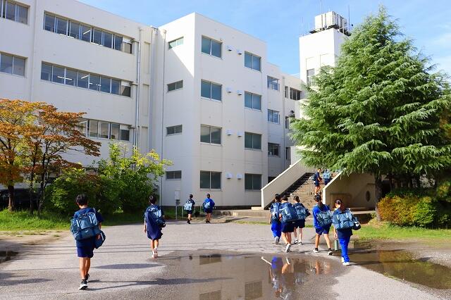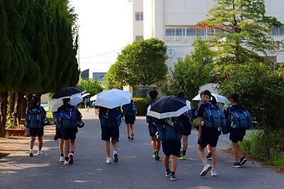 22日(月)爽やかな秋晴れの朝、今日も元気に登校する沼中生