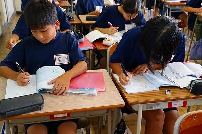 先日、いつものように教室の様子を観て回っていると、1年生の国語の授業で、「大人になれなかった弟たちに」という作品を学習していました。作者は俳優であり文筆家でもあり、私が子供の頃に焼肉のたれのCMに出ていた、米倉 斉加年(よねくら まさかね)さんという人です。内容は、戦争中の作者自身の体験を書いたものです。作者が国民学校(現在の小学校)4年生だったときに弟が生まれ、父は戦争に行き不在であった。戦争が激しくなり空襲を受け、防空壕で毎晩暮らす生活の中で食料が不足し、母は自分が食べる分を少年であった作者に与えていたが、満足に食べないために母は母乳が出なくなった。乳児である弟は乳を飲むしかないにも関わらず、時々にしか配給されない弟の為のミルクを、甘いものが欲しい作者は盗み飲みしてしまう。そんな作者を母は叱ることはなかった。さらに空襲がひどくなり母は疎開を決心する。疎開先でも食べるものと交換に持っていた着物を出さねばならず、やがて着物も無くなり、そして弟は栄養失調で亡くなる。母は弟が死んだ際にも気丈に振る舞い、涙を見せなかったが、弟を小さな棺(ひつぎ)に入れるとき、棺が小さすぎて弟の亡骸が納まらなかった。母は弟がほとんど乳を飲むことができなかったにも関わらず、「大きくなっていたんだね」と言い、それまで決して涙を見せなかった母が初めて泣いた。終戦の約半月前のことだった…、という内容である。2、3年生も国語の授業で学習したことを覚えているだろう。この作品を国語の授業とは違う観点で私は君達に考えてもらいたいと思う。生きたくても生きることのできなかった小さな弟、戦争で食べるものがなく、お腹をすかし、ミルクを盗み飲んでしまった幼少の作者を、母親は責めることなどできなかったであろうこと。そして、子を思う悲しいまでの親の愛。私たちは平和で豊かな時代に生まれ育ったことを噛みしめ、命ある限り感謝の心を忘れずに精一杯生きなければならないということを強く言いたい。現代の日本を生きる私たちにできることは、「知ること」なのです。戦争がどれだけおそろしいもので、戦争がどれだけ人々を不幸にするのか。そのことを「知って」そして「忘れないこと」。このことが、平和を守っていくためにはとても大切なんだと思います。