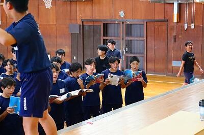 19日(金)新人戦壮行会、各部の新部長から決意表明