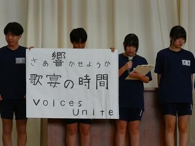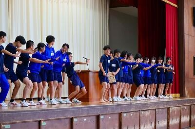 壮行会後に行われた合唱祭実行委員の生徒たちからの合唱祭盛り上げ宣言