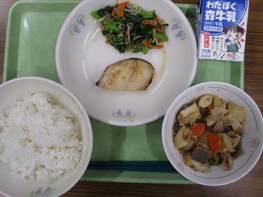 ごはん、牛乳、ほっけのみりん干し、ごま和え、肉じゃがでした。