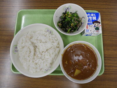 カレーライス(麦ごはん、ルウ)、牛乳、鉄骨サラダでした。
