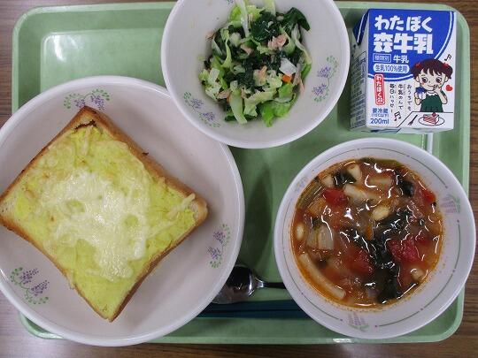 スイートポテトトースト、牛乳、ツナサラダ、ミネストローネでした。