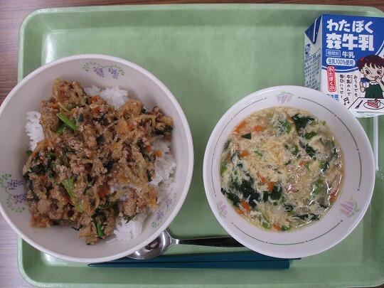 豚丼(麦ごはん、具【肉】)、牛乳、かきたま汁でした。