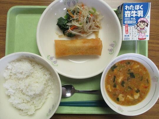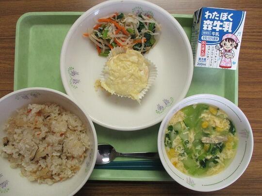 中華風炊き込みごはん、牛乳、いかのヤンニョムカンジャンかけ、春雨サラダ、豆腐スープでした。