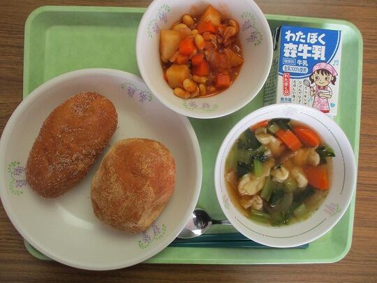 本日は食育の日の献立として、鉄を多く含む「あさり」を取り入れた「クラムチャウダー」がでています。