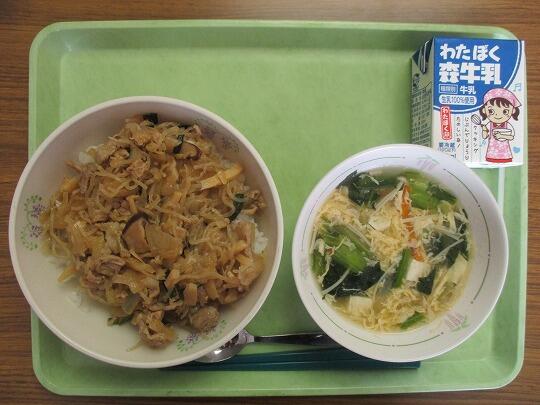 明日は、埼玉県の県公立高等学校の学力検査、明後日は、埼玉県の県公立高等学校の面接や実技検査の日です。本校からも多くの3年生が受験しますので、本日は応援の意味を込めて「カツ丼」です。沼中の3年生のことを陰ながら応援しています。