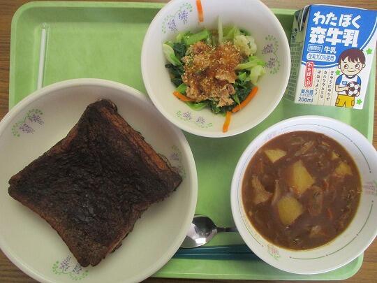 焼きカレーパン、、牛乳、バンバンジーサラダ、ミネストローネでした。