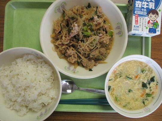 ごはん、牛乳、いわしのかば焼き、みそ和え、かきたま汁でした。