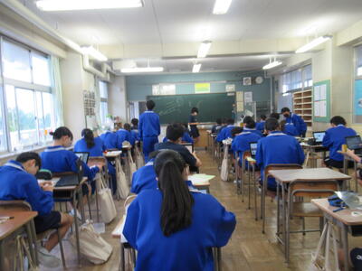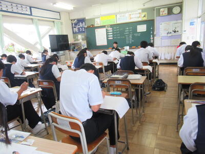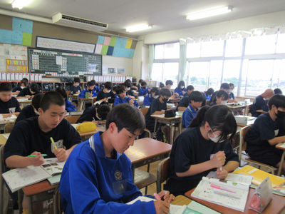 今日は今までの学習の成果を確認する「東部地区学力検査」を実施しました(3年生対象)。
