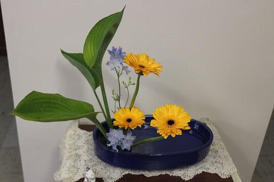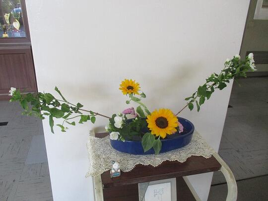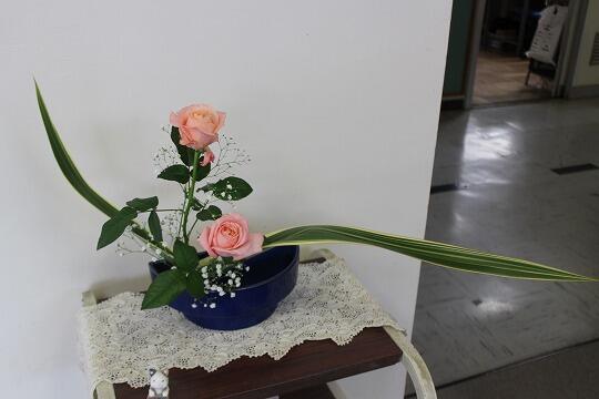 本日夕方から、華道部の活けたお花でお客様を出迎えています。