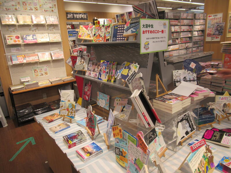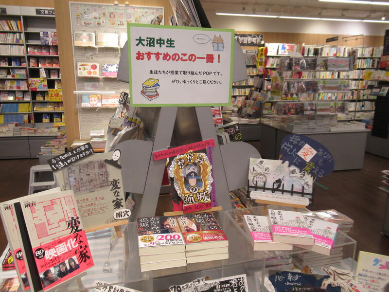 美術の授業の一環で取り組んだPOP作品が、リブロ春日部ララガーデン店で掲示されています。