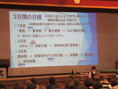明日から修学旅行中の3年生の様子はこちらのブログでも多少はアップしていきますが、3年生保護者に昨日配布した文書でお知らせしました限定公開ブログを中心にアップする予定です。
