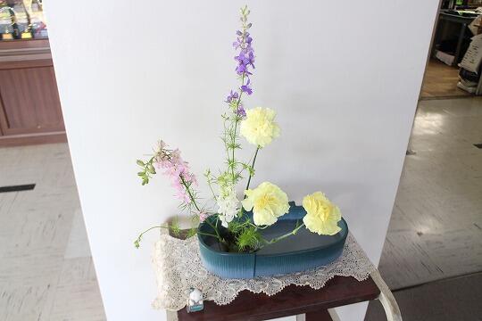 本日から、華道部の活けたお花でお客様をお迎えしています。