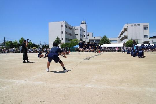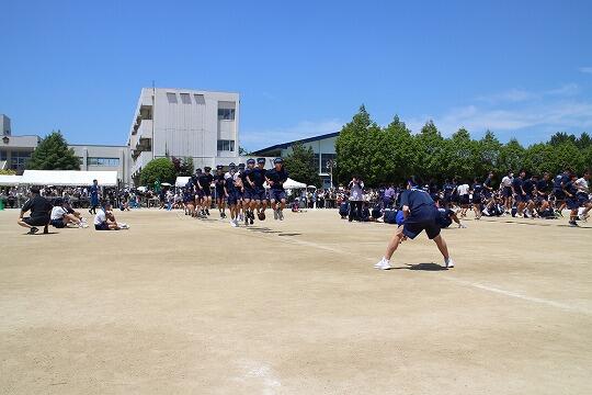 本日は晴天の中、第48回体育祭が開催されました。校歌の歌詞にもありますが、『歓声あがる校庭』で『百花繚乱~咲き誇れ沼中の熱き戦い~』のスローガンのもと、熱戦が繰り広げられました。