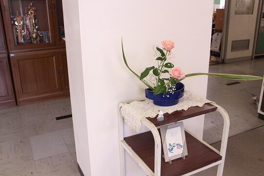 昨日から、華道部の活けたお花でお客様をお迎えしています。