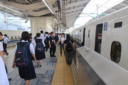 3年生を乗せた新幹線が新大阪に向けて出発しました。