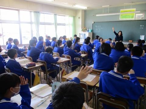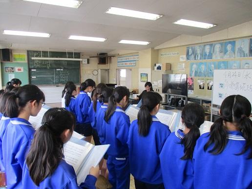 2時間目 音楽の授業です。「明日の空へ」を歌っています。