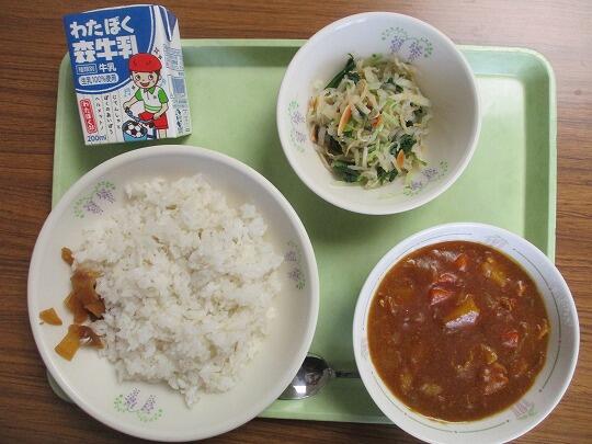 今日の給食のメニューはカレーライス(麦ごはん、ルウ)