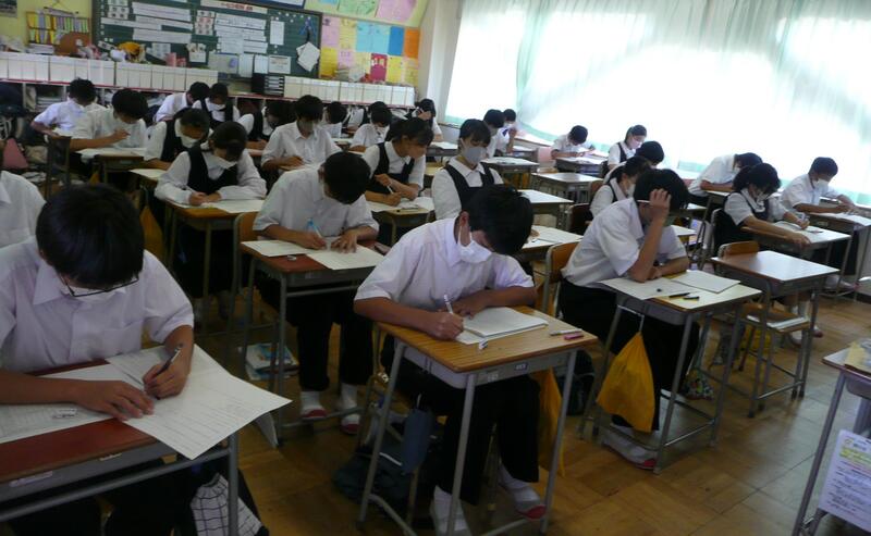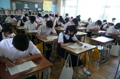 学校総合体育大会地区予選会も一段落し、3年生はいよいよ進路決定に向けて、本日は「第1回東部地区学力検査」が行われました。体育祭や学総と同じように、最後まであきらめない姿が多く見られました。