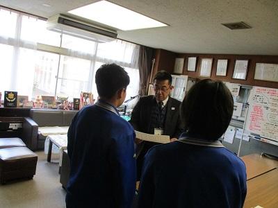 ひまわり賞」贈呈の様子です。「気づき、考え、行動してくれ」ありがとう