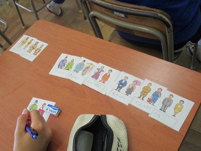 時代における衣装(服)についての学びの様子です。多くの意見に触れ、まと
