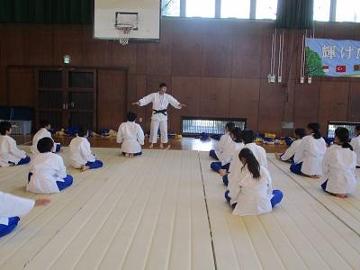 は、日本伝統の武道(柔道・剣道)を学んでいる様子です。校内に目を