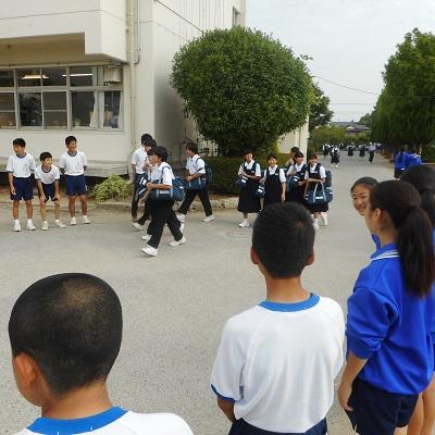 方みよる校外の安全指導(登校指導)が行われました。先週土曜日の体育祭を