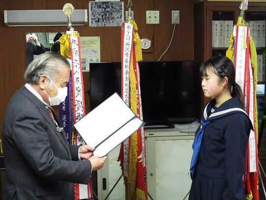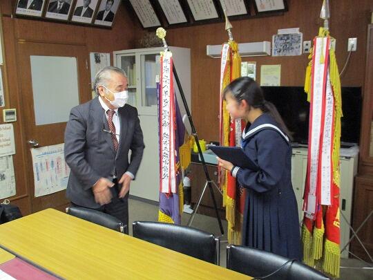 本日、昼休みに令和3年度2学期のひまわり賞の表彰を校長室で行いました。受賞者は2年生男子と3年生女子でした。