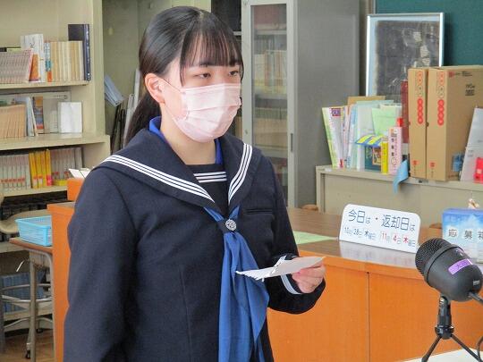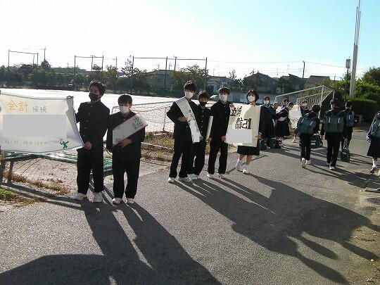 本日生徒会本部役員の演説会と選挙があるため本日で生徒会本部役員立候補者の朝の活動は終わります。