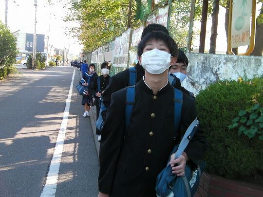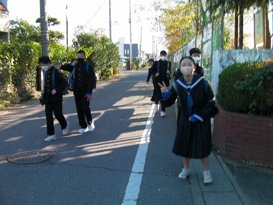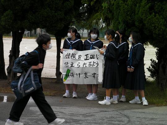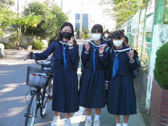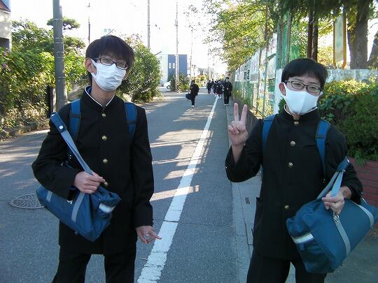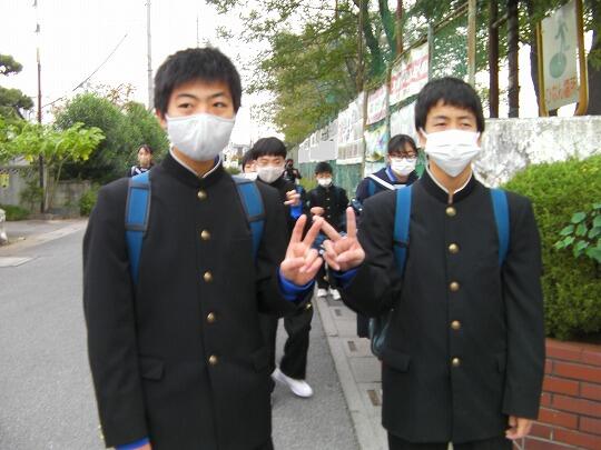 本日の登校風景です。昨日から期末テスト前の諸活動停止期間なので、朝は本校職員による登校指導も行いました。