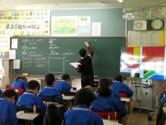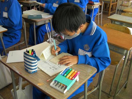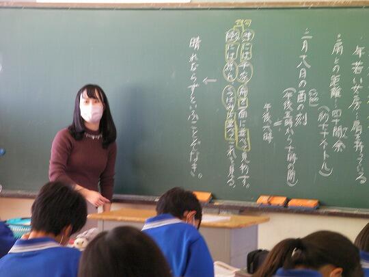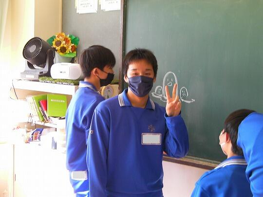 2年生の教室の黒板には昨日まで実習をしていた実習生へのメッセージが書かれていました。