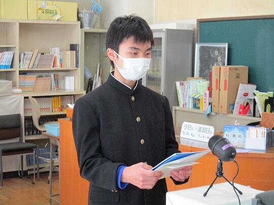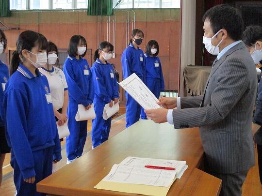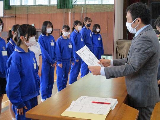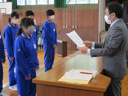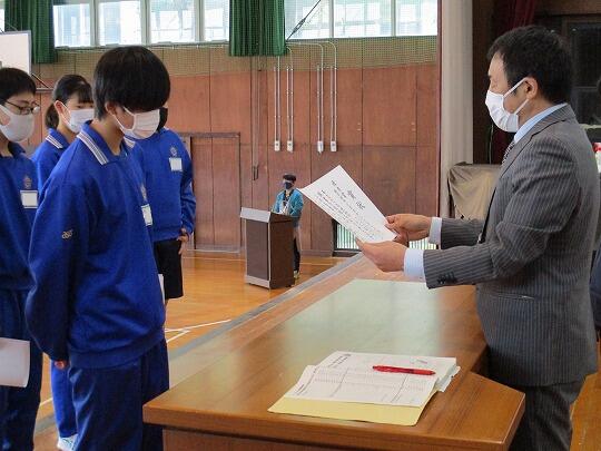 また、第45代生徒会本部役員の皆さん、この一年間、大変ごくろうさまでした。生徒総会では、「ノーチャイム」という建設的な意見が出てきて、その建設的な意見を実現させるための、新たな大沼中のチャレンジも軌道に乗ってきています。このように、大沼中の伝統を継承するだけでなく、新たな発展に力を尽くした皆さんに、改めて感謝をしたいと思います。ありがとうございました。