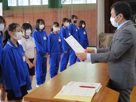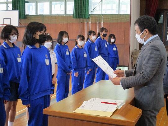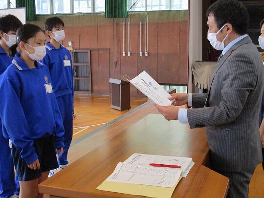 さて、第46代目となる新しい本部役員の皆さんには、歴代の生徒会の伝統を引き継ぐとともに、自分たちなりの考えや工夫を打ち出し、全校生徒と共に新たな大沼中を築いていってほしいと思います。これからの活躍をお願いしているとともに、大いに期待しております。