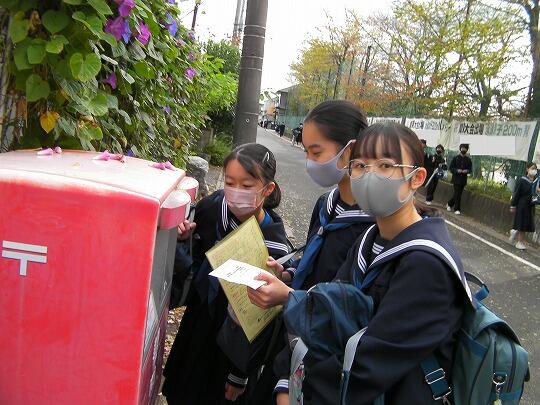 正門前のポストは便利で生徒が登校中に投函するのをたまに見かけます。