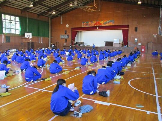 関西方面(大阪・京都)に修学旅行から帰ってきた3学年の生徒が3時間目を使って学年集会を行いました。