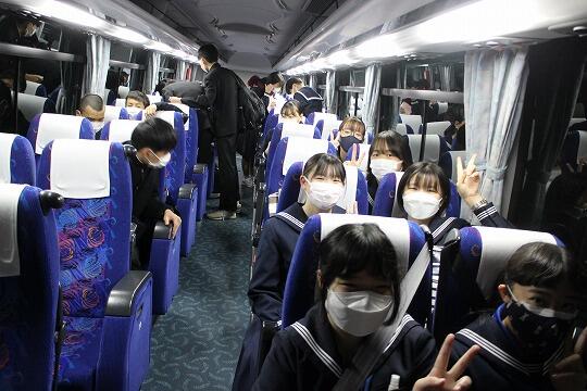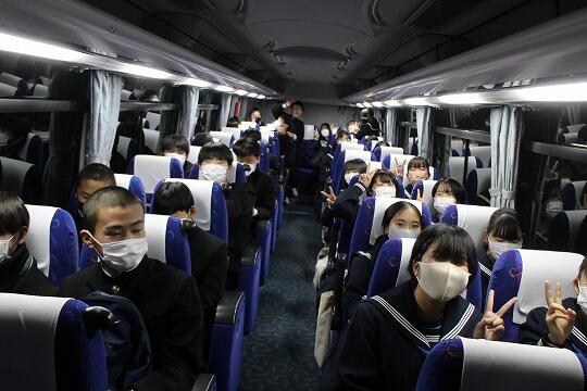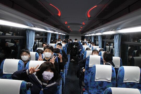 3年生を乗せたバスが予定通り大沼中を出発しました。