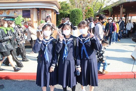 パーク内を一周してきましたが、生徒たちはそれぞれアトラクションに並んでいるらしく、なかなか沼中生に会えません。特に男子はなかなか会えず、会えたとしても写真NGで撮らせてもらえませんでした。